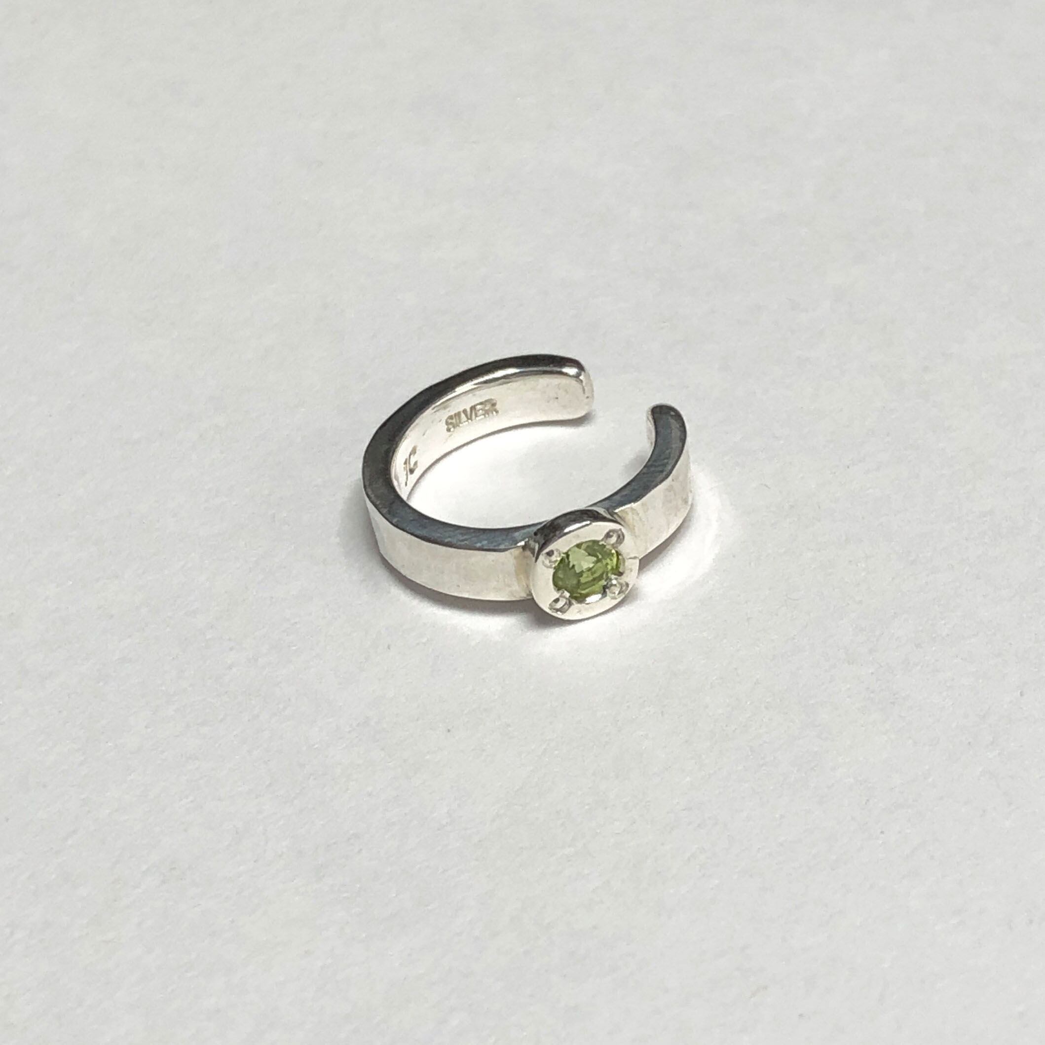 【選べる宝石イヤーカフ3mm幅槌目】高純度シルバー1000 平打ちハンマー ユニセックス 手作り 日本製