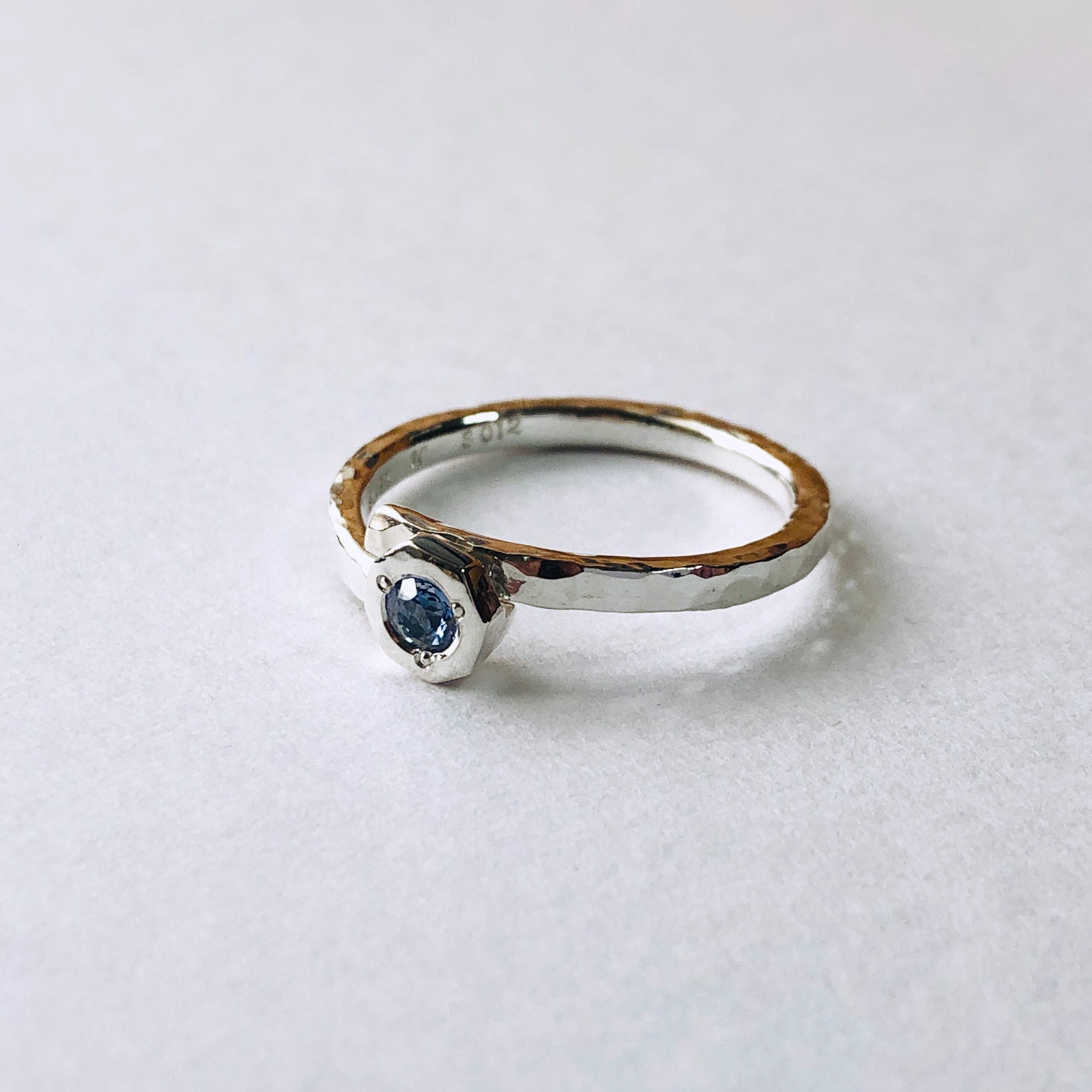 【 選べる宝石8角槌目リング 】サイズ微調整できる純銀リング シルバー1000 文字刻印無料 日本製