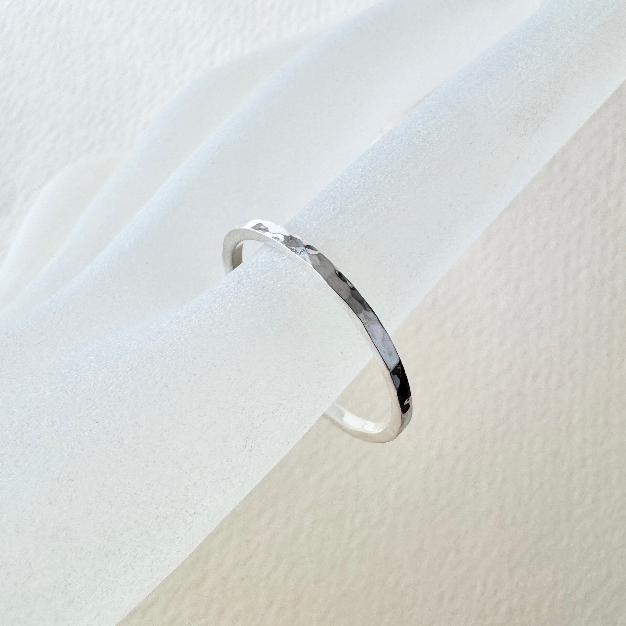 【槌目リング1.5mm幅スクエア】高純度シルバー1000 ハンマーリング ユニセックス 手作り 日本製